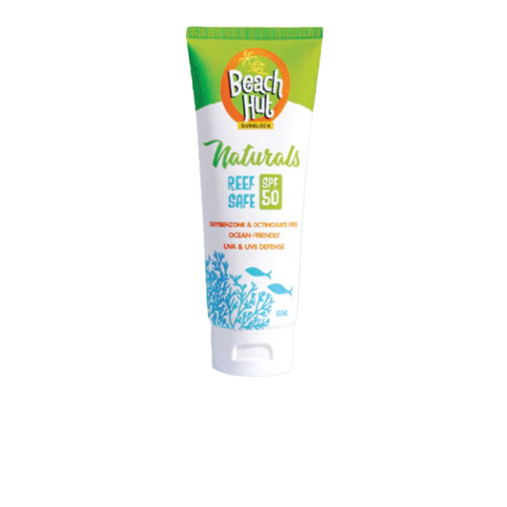 Beach Hut Sunblock Naturals Reef Safe SPF50 – Ocean-friendly sunscreen with natural, ultra-safe ingredients. Provides high SPF50 protection for guilt-free fun under the sun. Free sunblock with every 2 Quiksilver Destination Tees!